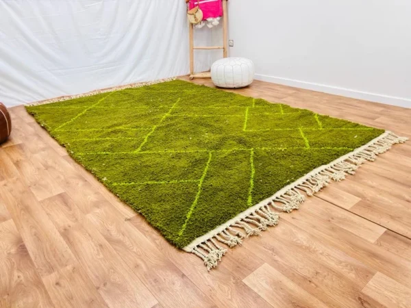Tapis Azilal berbères marocains sur-mesure. Nous vous présentons notre collection de tapis faits main à partir de laine 100%. Les tapis Azilal sont originaires de la région montagneuse de l’Atlas au Maroc, où ils sont tissés par les femmes berbères selon des techniques ancestrales transmises de génération en génération. Chaque tapis est unique et raconte une histoire à travers ses motifs et ses couleurs vives.