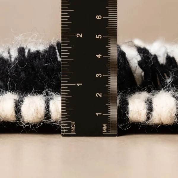 - 100% Laine: Nous privilégions la qualité avec des matériaux authentiques. Nos tapis sont confectionnés à partir de laine 100% naturelle, offrant douceur, chaleur et durabilité. Un investissement dans la qualité qui résiste à l’épreuve du temps.